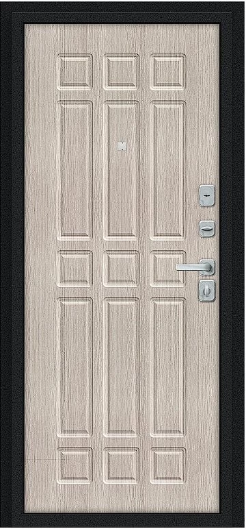 Надежная входная Дверь Браво Мило МФ/BChrome Букле черное/Cappuccino Melinga премиум класса по цене 35 575 руб. Большая толщина стали защитит от проникновения в ваш дом, квартиру или коттедж. Используется очень качественная фурнитура: замки, цилиндры, ручки, защелки. Покрытие и отделка двери изготовлено под внимательным контролем производителя. Дверь имеет долгий срок службы и гарантию.